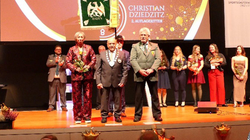 Beim diesjährigen Landeskönigsball 2025 in Wiesloch konnte der KKS Hüffenhardt einige Erfolge für sich verbuchen. So wurde Julia Kratz bei der Schützenjugend 2 Page, Melanie Nietschke wurde 2 Hofdame in der Damenklasse und Christian Dziedzitz wurde 2. Ritter in der Auflageklasse, in der dieses Jahr zum ersten Mal ein Schützenkönig ausgeschossen wurde.